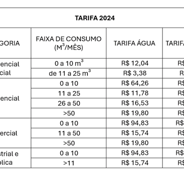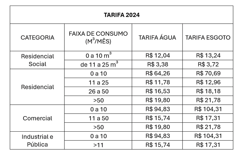 Reajuste tarifário Junho/2024 - Balneários Camanho e Garopaba do Sul